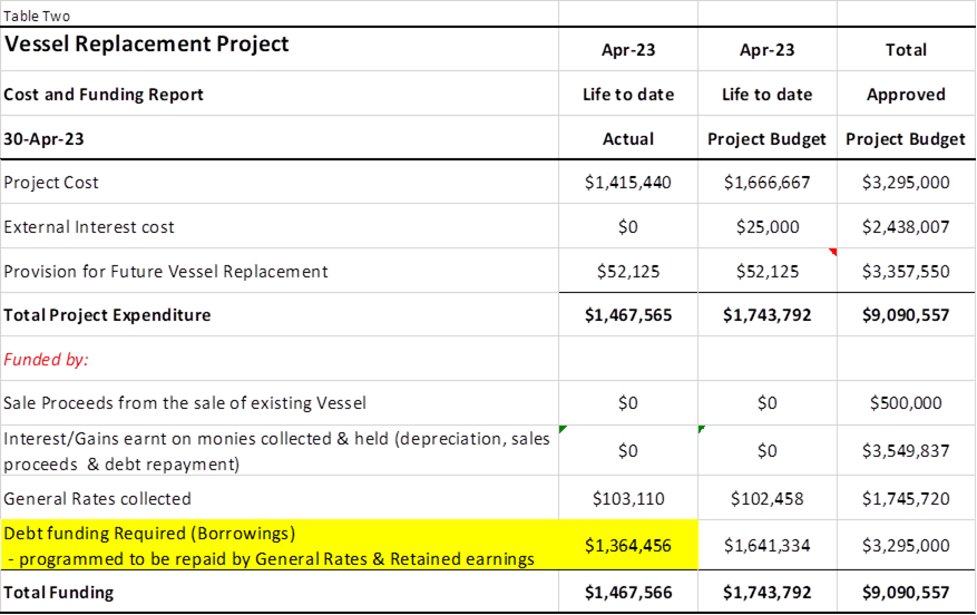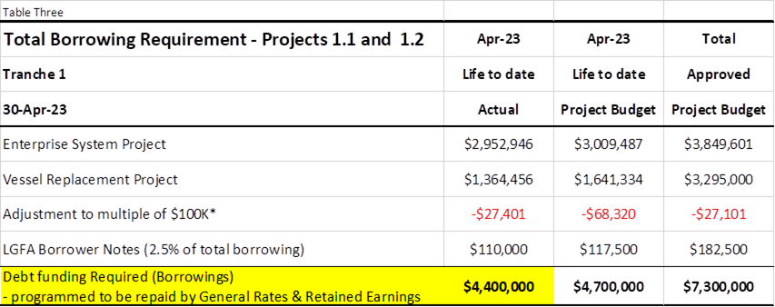 7.1      Approval to Borrow $4.4m to fund the Enterprise Project and Vessel Replacement Project                          70